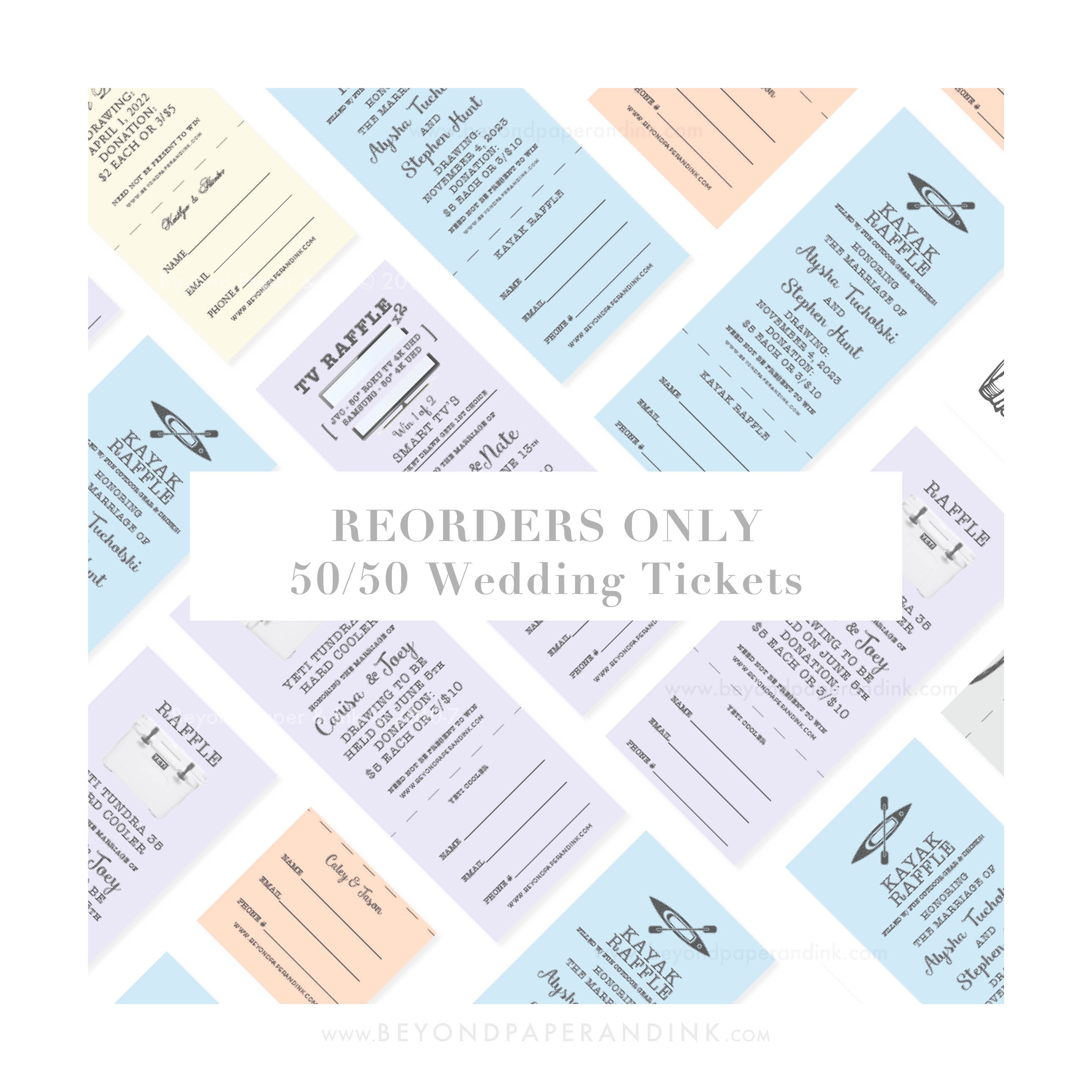 50/50 Raffle Tickets for Weddings & Events